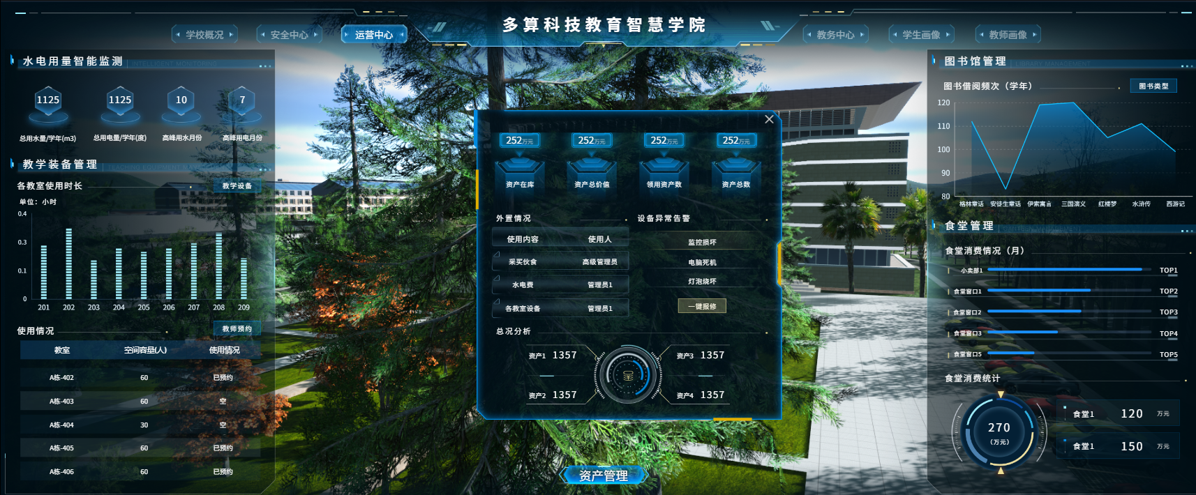 实时进行教室装备管理、图书馆管理、食堂管理,能即时预约位置